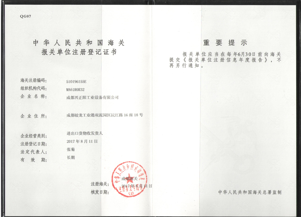 海关报关单位注册登记证书